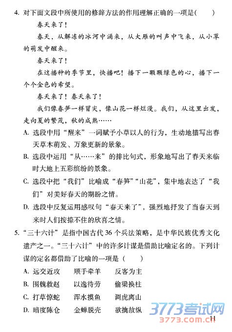 2013年杭州中考语文模拟试题及答案