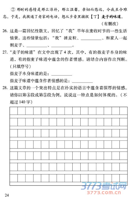 2016北京中考考试说明已经发布,下面是语文考试参考样题及答案(现代文阅读) 。