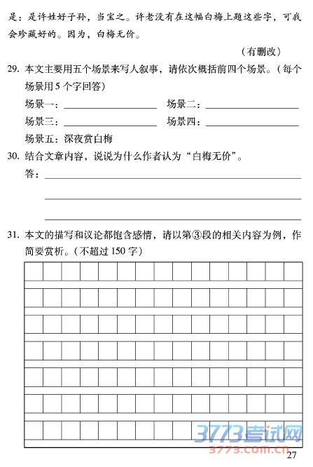3773考试网 - 中考网 - 模拟题答案 - 语文 - 正文