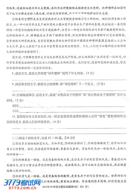 安庆市2013年中考数学一模试题答案(十八校联考)