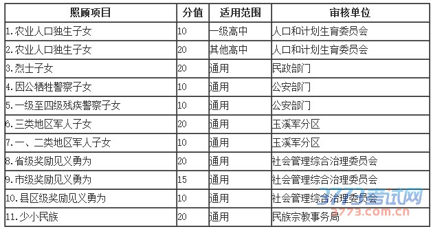 1. 云南省人民政府《云南省农业人口独生子女家庭奖励规定》(云政发〔2004〕101号)文件规定,“初中毕业报考本州(市)一级中学的,加10分优先录取,报考本县(市、区)其他高中的,加20分优先录取”。