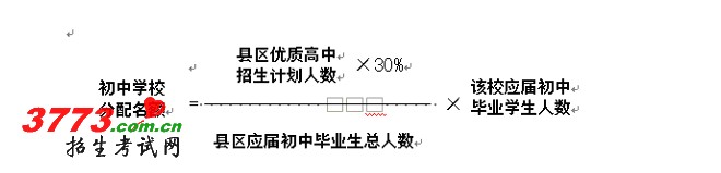 各县区教育局要根据本县区优质高中招生计划数与各初中学校应届毕业生人数,按下列计算办法,将名额分配到各初中学校。