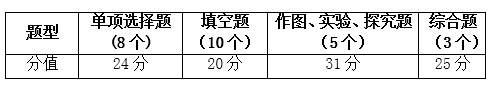 初中物理学科阶段性考试主要考查八年级学生在物理基础知识与技能、过程与方法、情感态度与价值观方面达到课程目标所要求的程度。试题注重与学生实践和生活实际的联系,注重在具体物理问题情境中考查学生综合运用所学知识分析、解决问题和把握规律的能力。