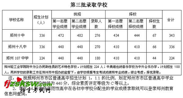 2010郑州市中招各高中录取分数线如何划定?