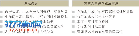 经过三年的学习(前2年在中国,第3年在加拿大)完成中加两国高中课程,所有合格学生可获得郑州七中高中文凭和加拿大安大略省教育厅颁发的加拿大安大略省中学毕业文凭(Ontario Secondary School Diploma),毕业后直接申请加拿大,美国及英联邦国家顶尖大学。