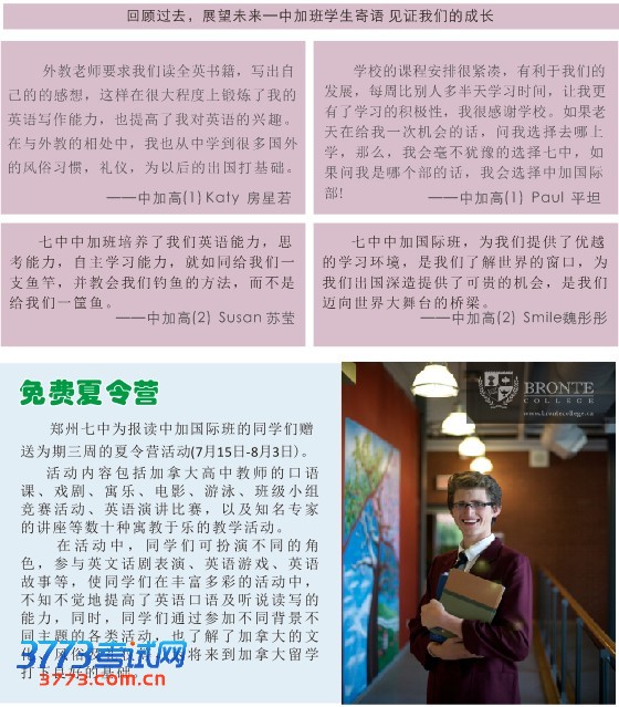 郑州七中中加国际班 面向全省招收初三应届毕业生