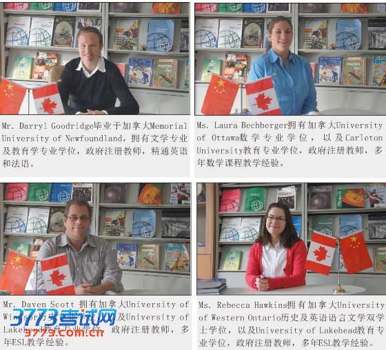 外方教师由加拿大Bronte College选派,均为加拿大政府注册高中教师,具有丰富当地高中教学经验