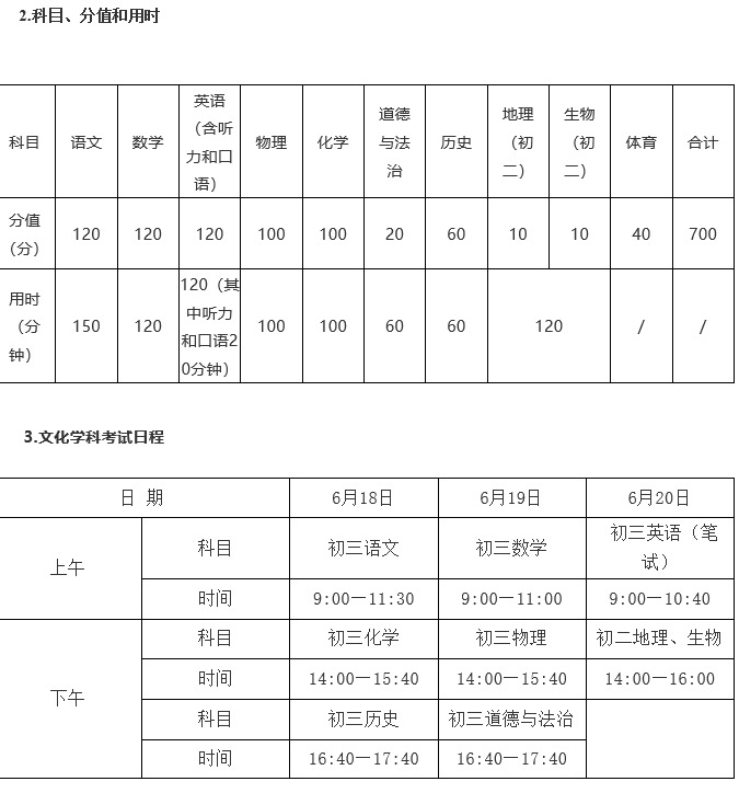 上午 科目 初三语文 初三数学 初三英语(笔试)