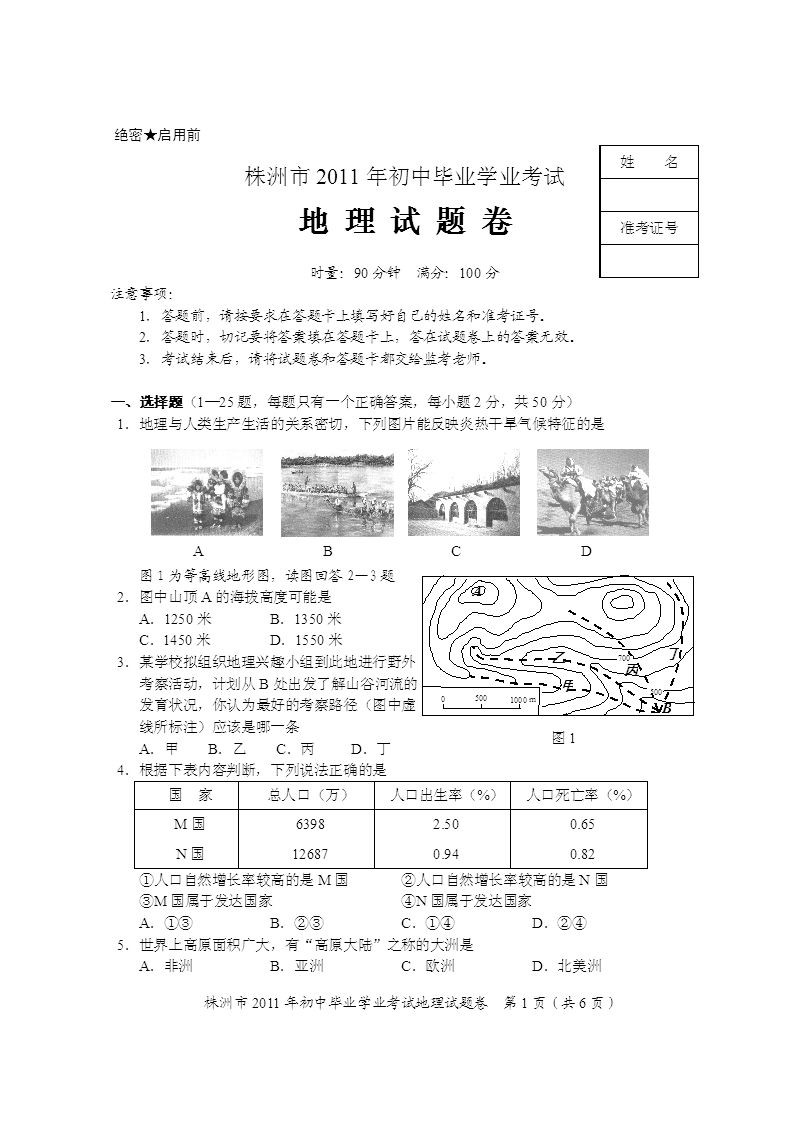 湖南株洲2011年中考地理试题及答案