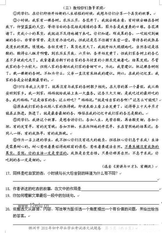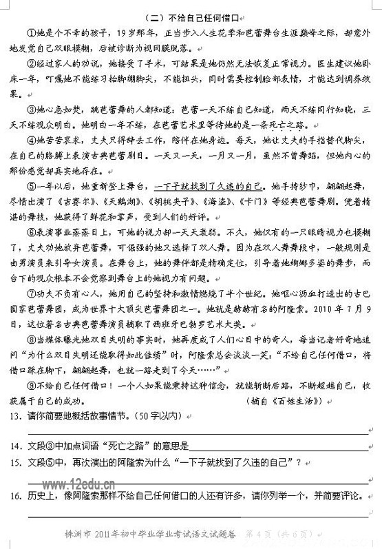 2009年株洲中考成绩以A、B、C、D、E、F六个等级划分