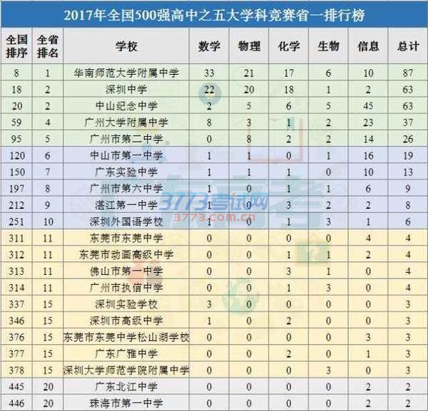 广东省一共有21所高中进入了全国500强,全广州一共有7所高中进入全国500强榜单,广东省高中的排名如下: