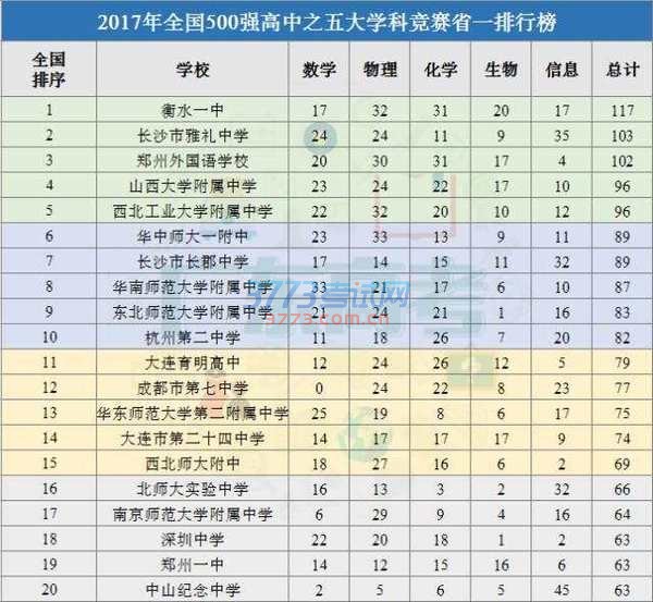 根据教育部、中国科协官方公布的《2016五项学科竞赛省一等奖名单》,自主招生信息平台联合学科竞赛网统计出所有获得学科奥赛省一等奖的高中学校,发布了一个全国高中排行榜。