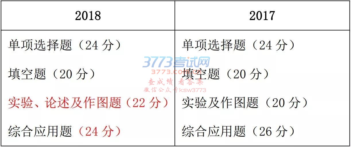 与2017年相比,2018年在考试性质、考试范围、考试要求、考试内容、题型结构和题型示例均做了调整. 具体变化如下: