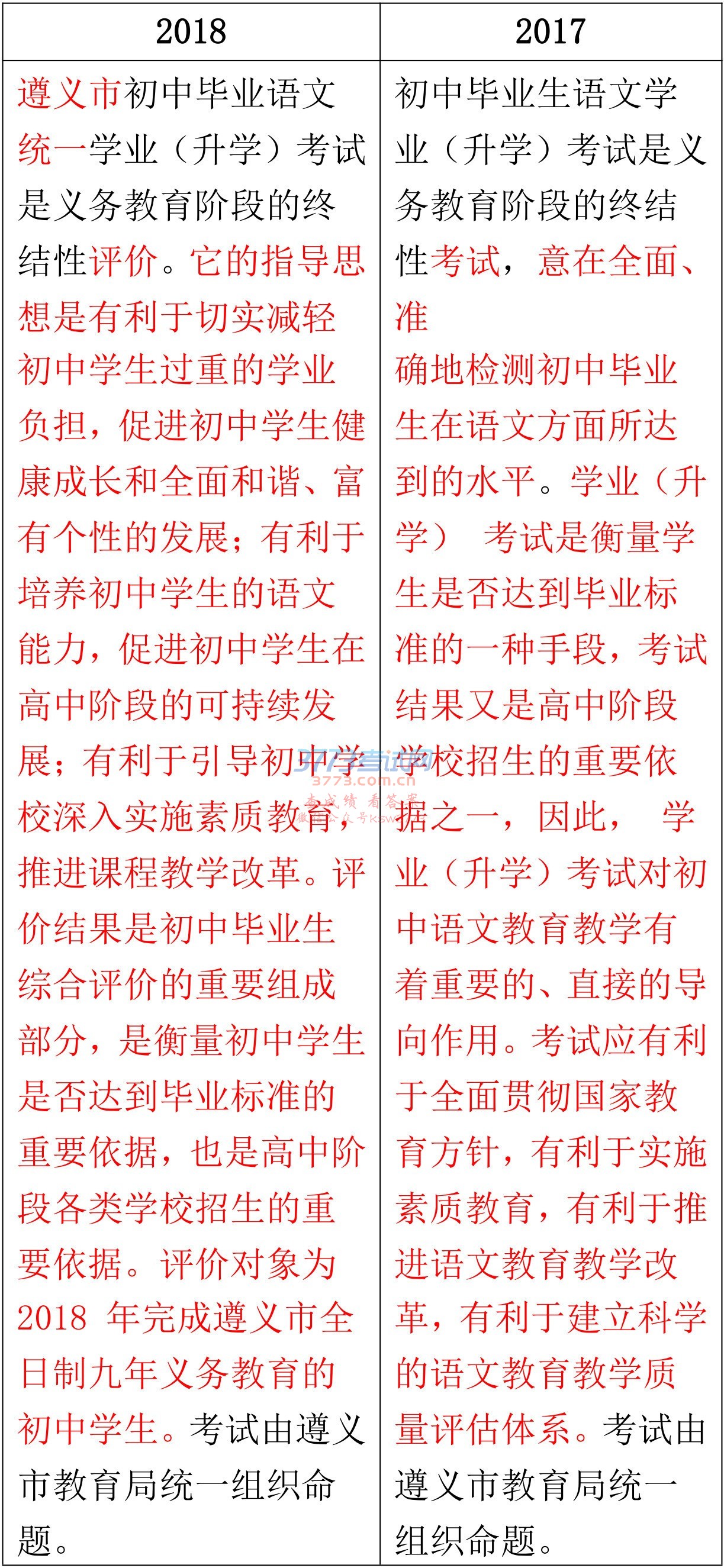 具体变化如下:(以下题号为《遵义市2018年初中毕业生学业(升学)考试实施意见》中考试内容的题号)