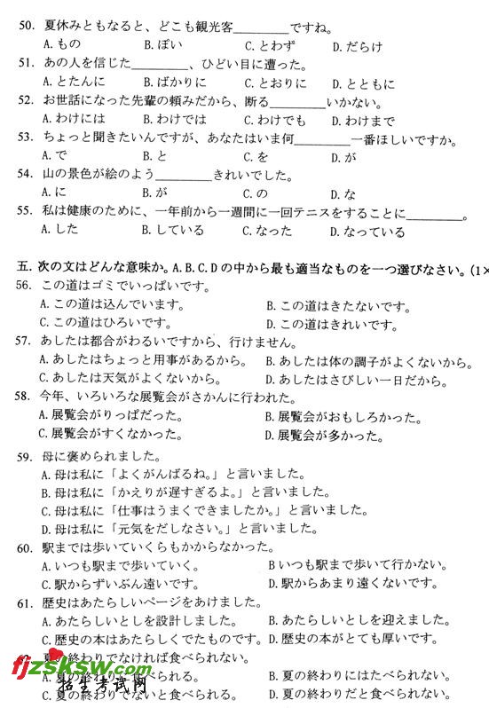 2010年10月浙江省自学考试基础日语(二)试题