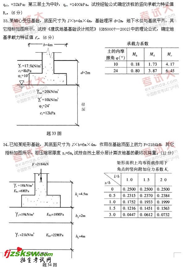 15.某饱和粘性土的无侧限抗压强度qu=36kPa,则该土的内聚力cu为___________kPa。
