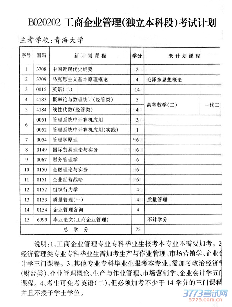 青海2015年自考工商企业管理(独立本科段)考试计划