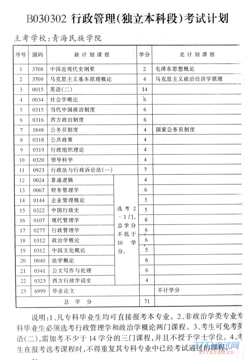 青海2015年自考行政管理学(专科)考试计划
