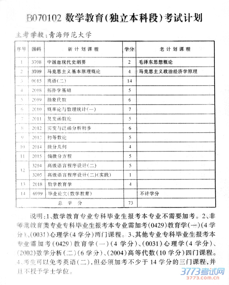 青海2015年自考数学教育(独立本科段)考试计划