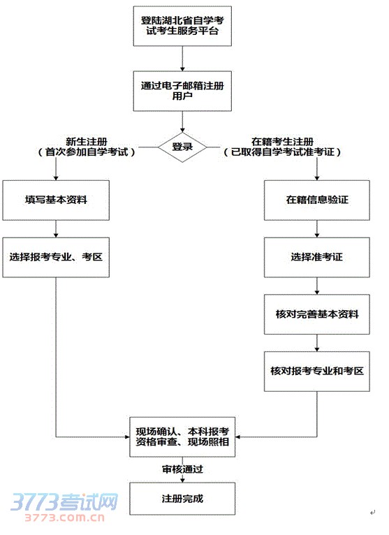 附件:湖北省高等教育自学考试网上注册与现场确认流程图