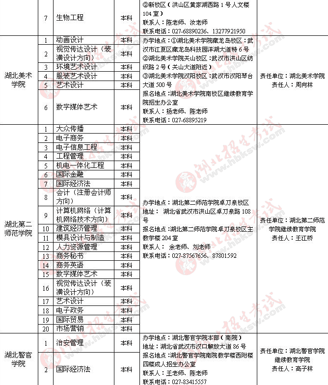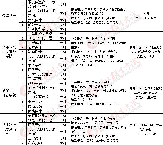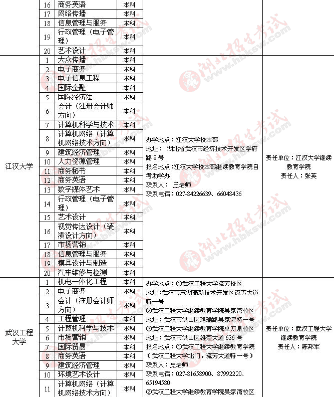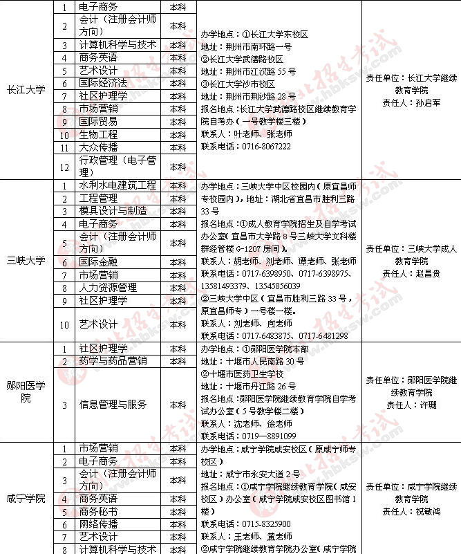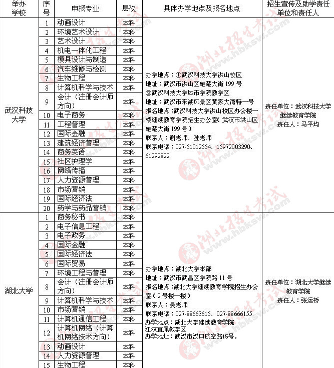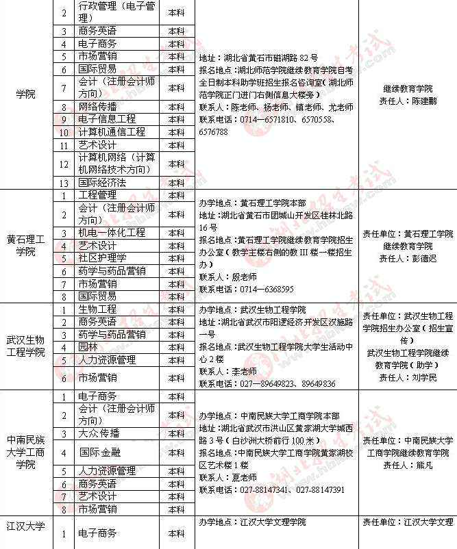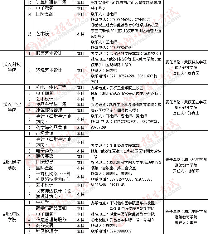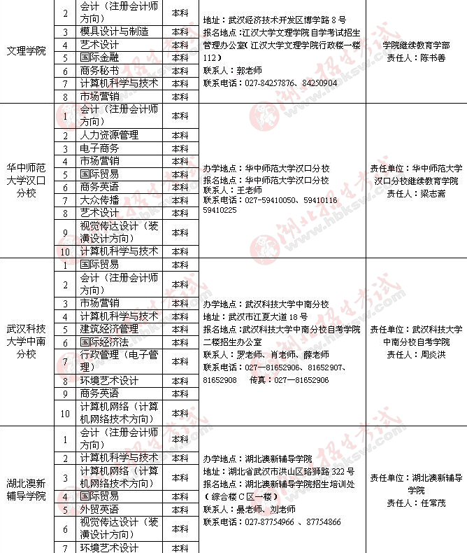 2009年湖北省自学考试全日制助学班举办学校及专业
