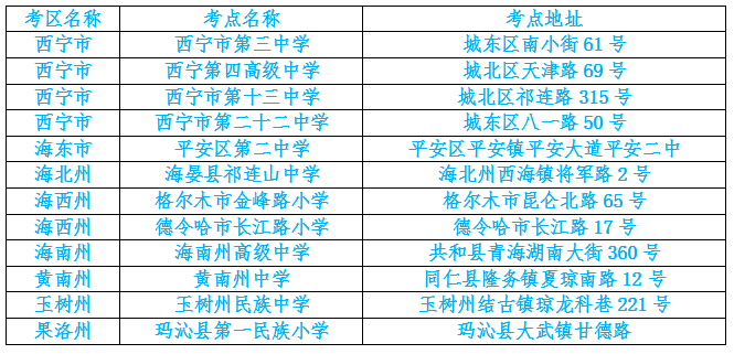 1.考生网上自行打印“准考证及考场座次单”,并明确考试地点(先看考点的考场号,再看该考场号所对应的考点学校)及时间。打印时间为:4月8日—14日,打印准考证网址:青海省教育考试网(http://www.qhjyks.com)或青海省考试管理中心网(http://www.qhkszs.com)。