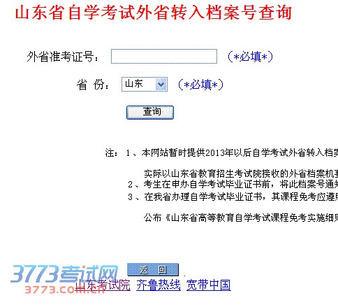 注:1、本网站暂时提供2013年以后自学考试外省转入档案号查询,查询信息仅供参考,