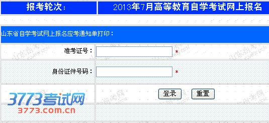 2013年山东省7月自学考试网上报名通知单打印2013-07-02