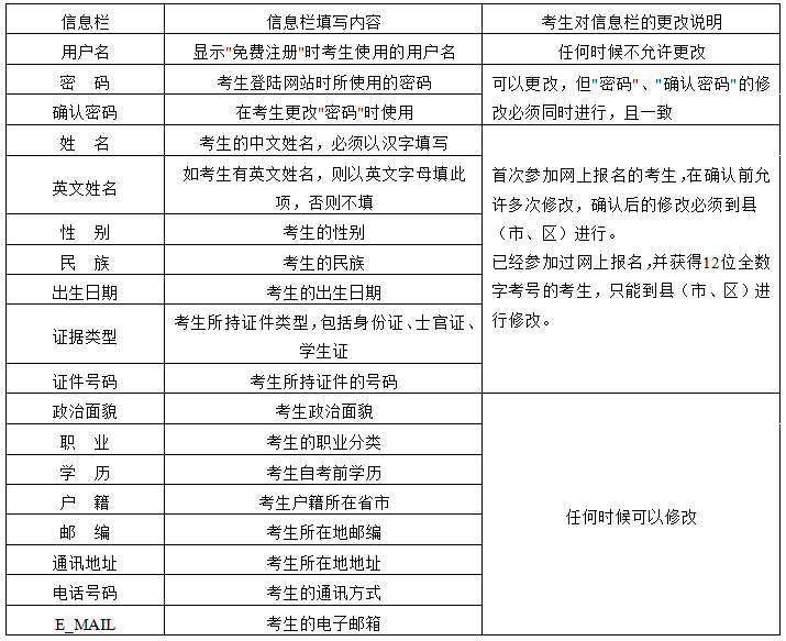 1、考生基本信息栏说明