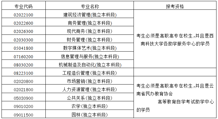 3、下列专业属自学考试和非学历证书考试相结合的专业,部分课程需参加非学历证书考试,取得非学历证书考试相关课程合格成绩后,可顶替以下专业相应课程的学分。
