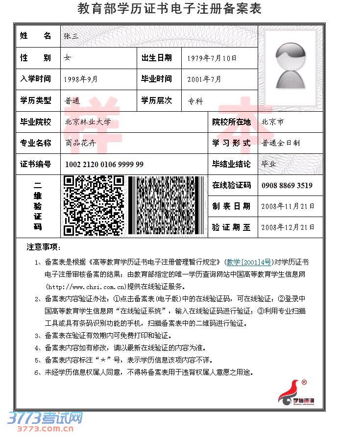 答:《教育部学历证书电子注册备案表》是根据《高等教育学历证书电子注册管理暂行规定》(教学[2001]4号)对学历证书电子注册审核备案的结果。它是在学历网上查询系统的基础上,利用全国高等教育学历证书电子注册数据库,为企业、个人或相关机构提供多种形式的学历查询结果,并提供权威、便捷的在线验证服务。