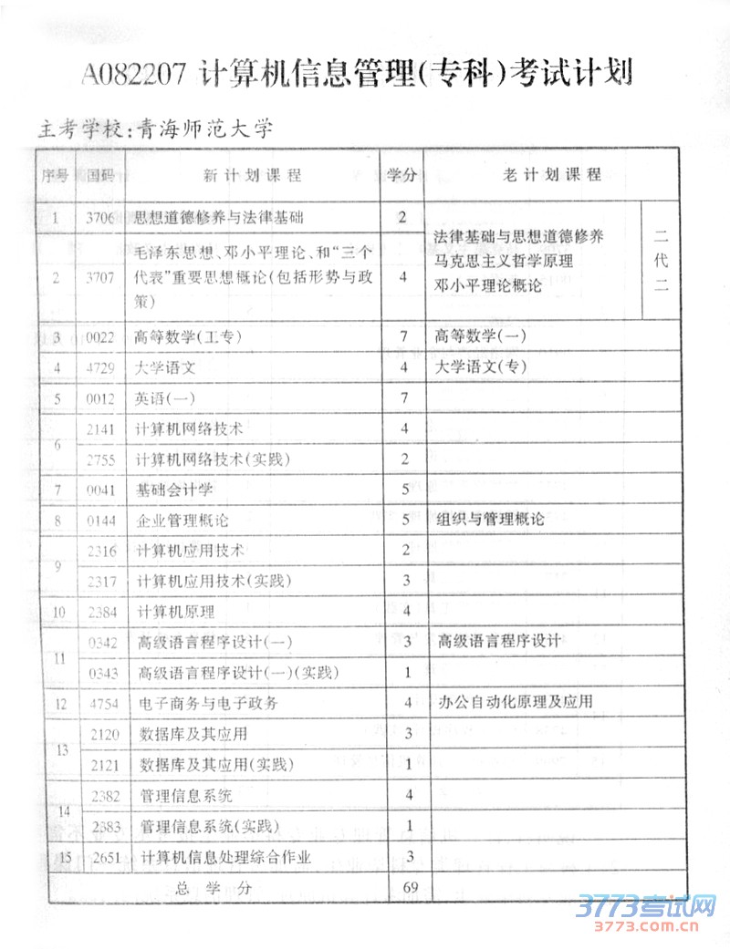 青海2015年自考计算机信息管理(专科)考试计划
