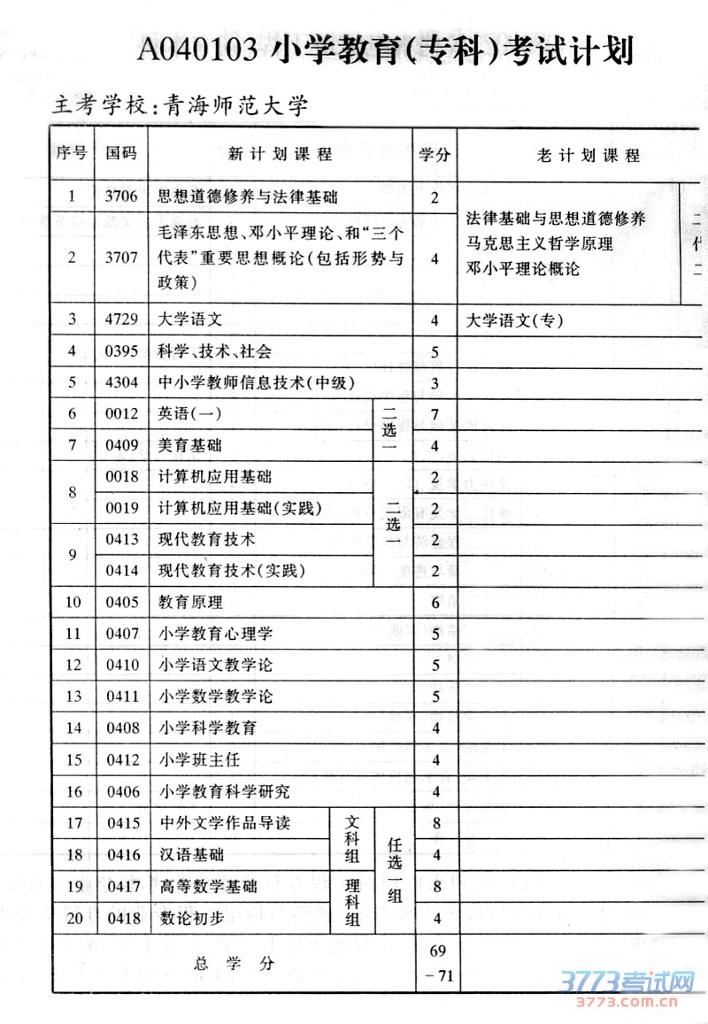 青海2015年自考小学教育(专科)考试计划