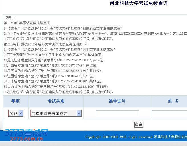 2013河北科技大学专接本成绩查询系统