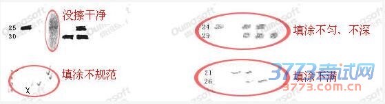 在填涂信息位时应作到准、深、满、匀、净:“准”是指涂准位置,答题卡不要涂串行;“深”是指信息点要涂深,以盖住原印刷符号为准;“满”是指要涂满信息位的方框;“匀”是指整个信息卡的所有涂点要涂的基本一致,不要有深有浅差别太大;“净”是指在涂错时一定要用塑料橡皮擦干净。