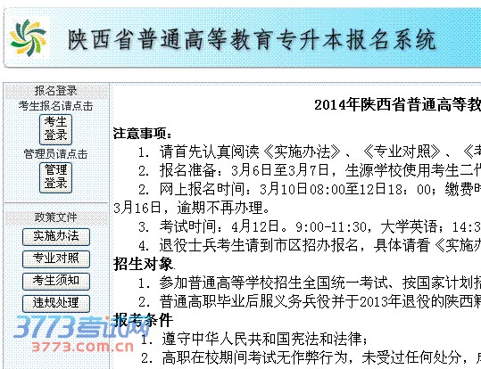 志愿填报时间:2014年5月5日8:00至7日18:002014陕西专升本志愿填报入口