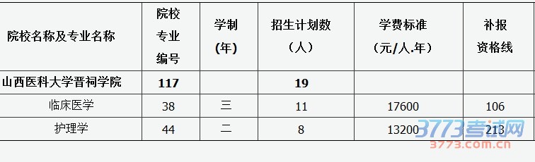 2015年山西省普通高校专升本第二批院校补报志愿公告(六)